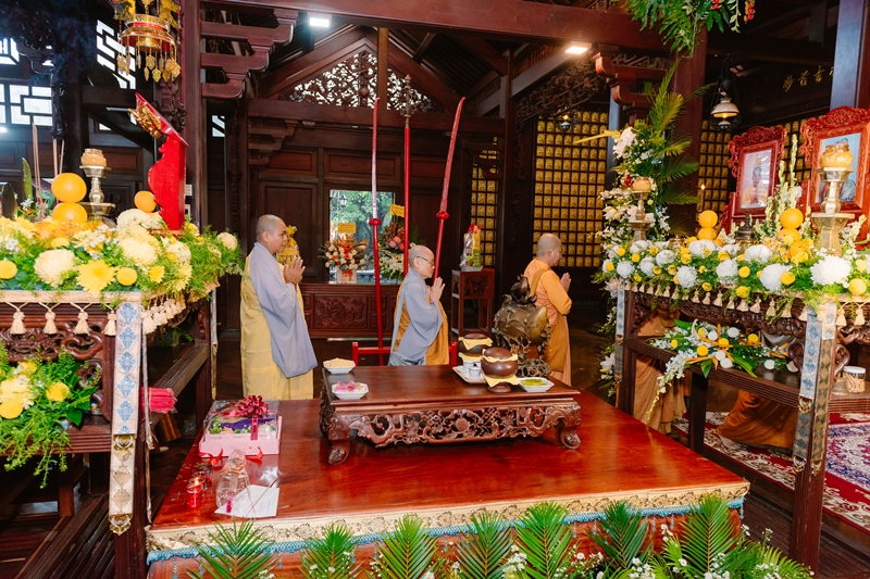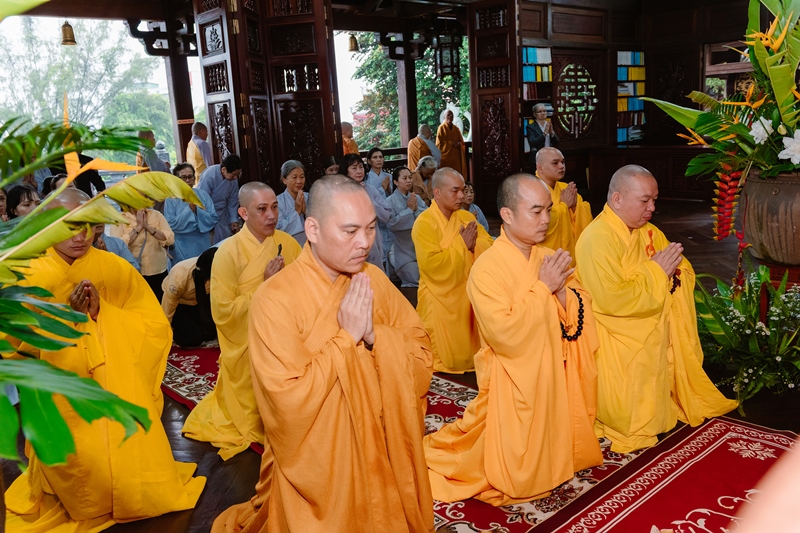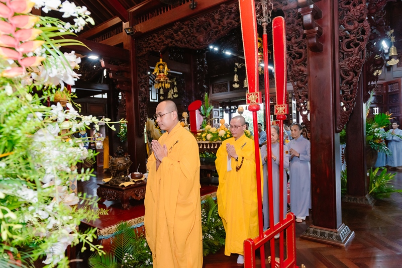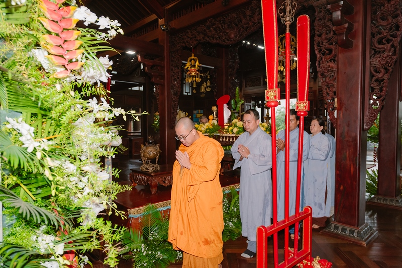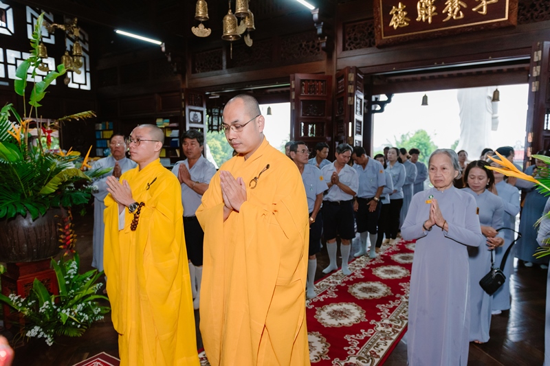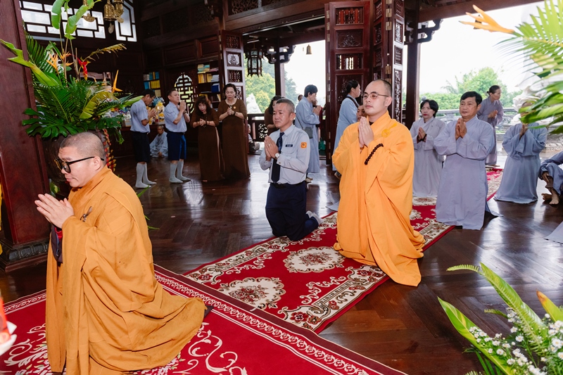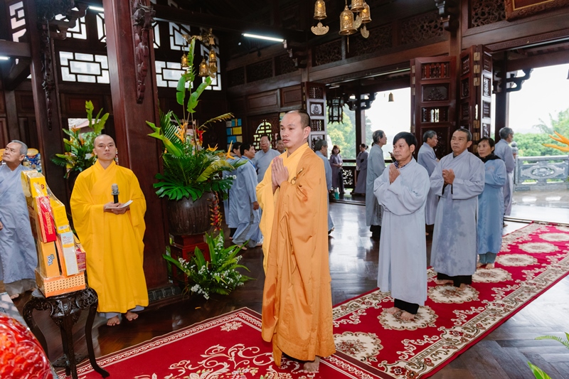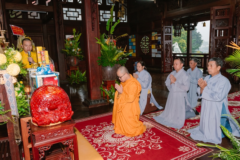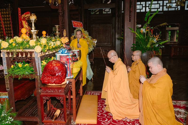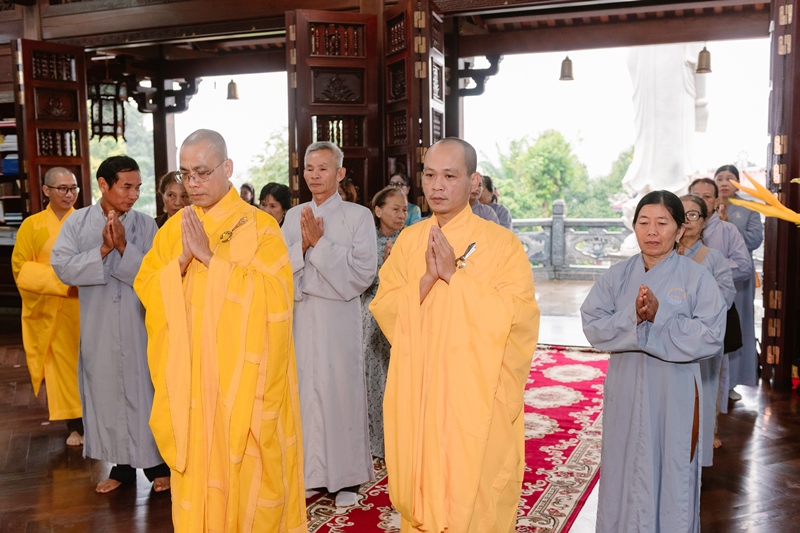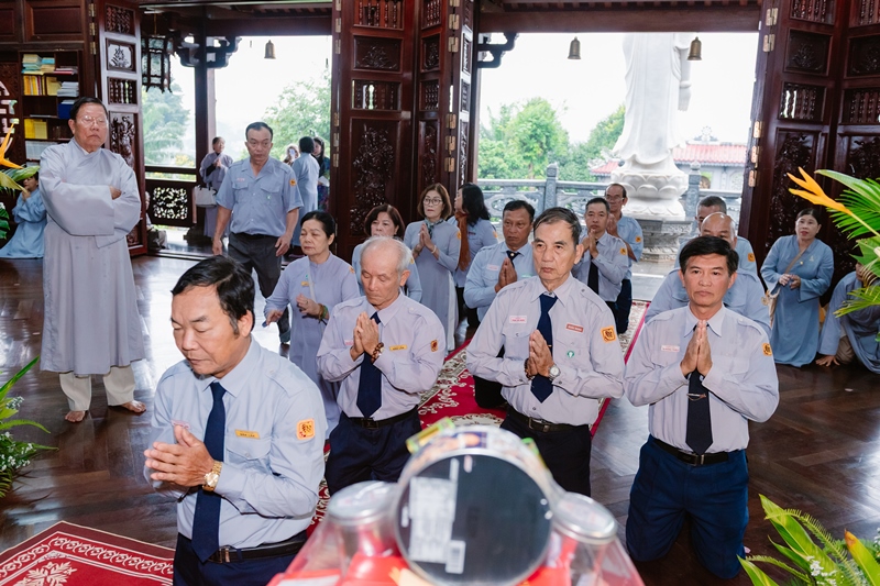 Tại đại hùng bảo điện chùa Sắc tứ Khải Đoan, phái đoàn đã cung đối trước giác linh đường tôn trí di ảnh và long vị của nhị vị Hòa thượng tôn sư, trang nghiêm dâng hương, dâng hoa tưởng niệm, tri ân công hạnh của các bậc tôn túc - trưởng thượng đã có những đóng góp to lớn trong việc phát triển đạo pháp tại vùng cao nguyên Đắk Lắk nói chung và chùa Sắc tứ Khải Đoan nói riêng. Nhất tâm cầu nguyện giác linh của các bậc tôn sư khả kính cao đăng Phật quốc. Tiếp đến, chư tôn đức hữu nhiễu giác linh đài nhị vị Hòa thượng ân sư trong niềm thương kính vô hạn.