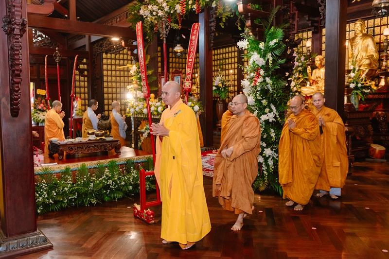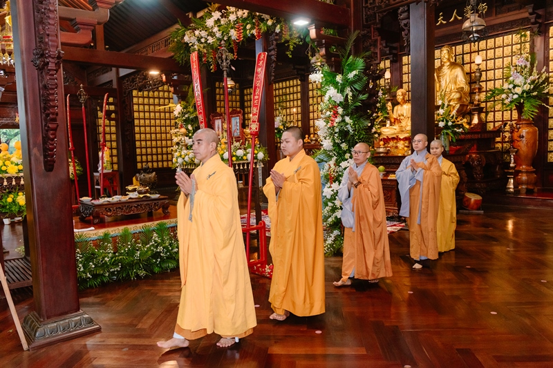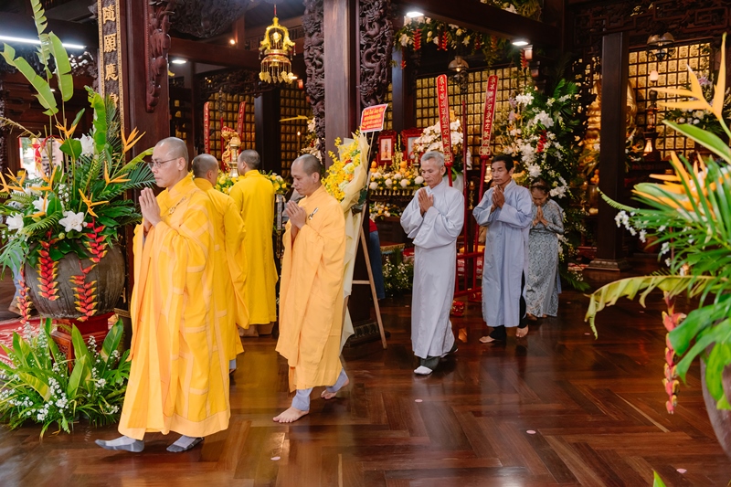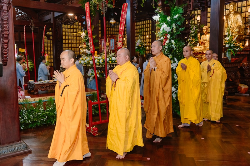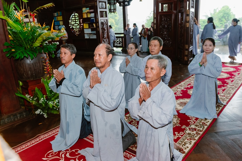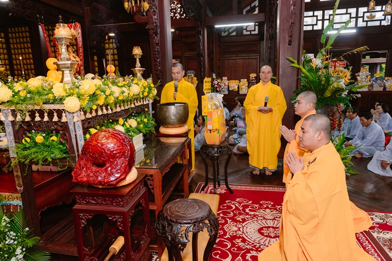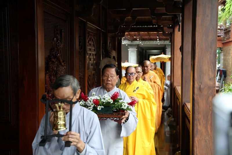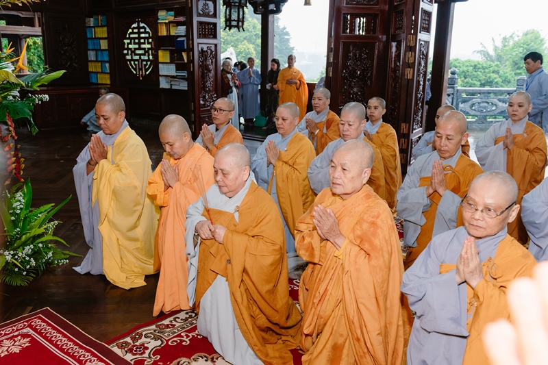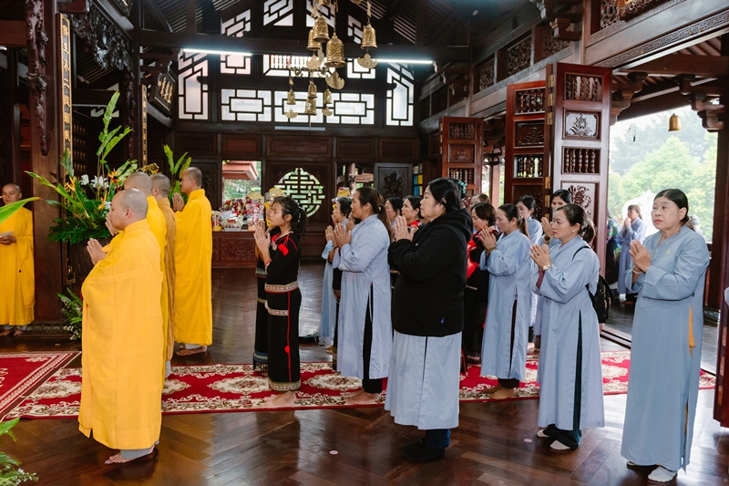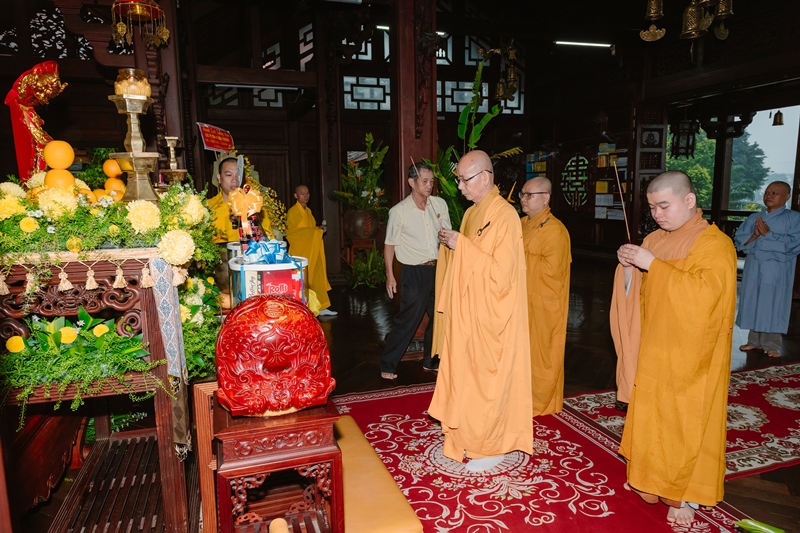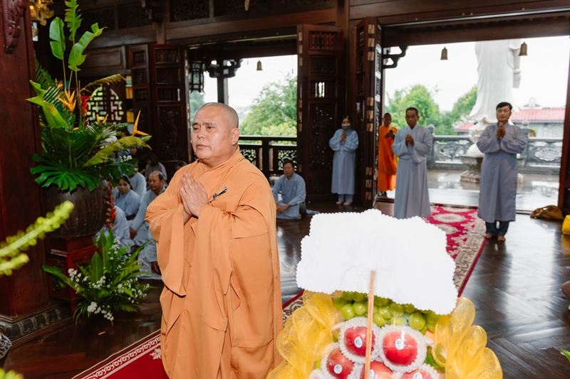 Tại đại hùng bảo điện chùa Sắc tứ Khải Đoan, phái đoàn đã cung đối trước giác linh đường tôn trí di ảnh và long vị của nhị vị Hòa thượng tôn sư, trang nghiêm dâng hương, dâng hoa tưởng niệm, tri ân công hạnh của các bậc tôn túc - trưởng thượng đã có những đóng góp to lớn trong việc phát triển đạo pháp tại vùng cao nguyên Đắk Lắk nói chung và chùa Sắc tứ Khải Đoan nói riêng. Nhất tâm cầu nguyện giác linh của các bậc tôn sư khả kính cao đăng Phật quốc. Tiếp đến, chư tôn đức hữu nhiễu giác linh đài nhị vị Hòa thượng ân sư trong niềm thương kính vô hạn.