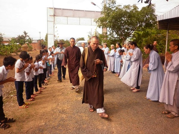 Sau lễ dâng hương tưởng niệm liệt sĩ, dưới sự hướng dẫn của thượng tọa đặc trách, phái đoàn lần lượt đến thăm các chùa và niệm Phật đường trong huyện. Quý đạo hữu phật tử tại các đơn vị thể hiện sự tôn kính chư tôn đức bằng nghi thức cung đón hết sức trang nghiêm và thành kính. Phái đoàn lắng nghe bà con phật tử tại các địa phương trình bày những khó khăn thuận lợi trong tu học cũng như các công tác phật sự khác để có hướng tạo điều kiện giúp đỡ. Đáp lại, chư tôn đức động viên sách tấn Phật tử cần tinh tấn hơn nữa trên con đường học đạo của mình, yêu thương, giúp đỡ các bạn đồng tu vượt qua khó khăn trong đời sống tâm linh cũng như vật chất. Phải biết áp dụng lời phật dạy vào trong đời sống một cách thông minh, đặc biệt là sử dụng pháp môn lục hòa trong các đạo tràng để từng bước trang nghiêm giáo hội góp phần xây dựng đạo pháp phụng sự xã hội.