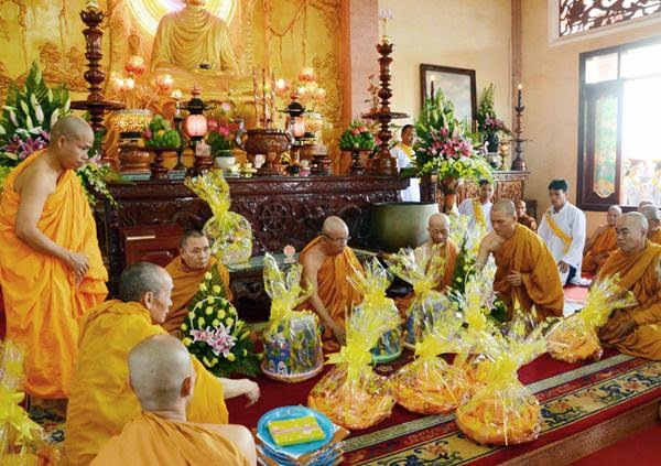Sáng ngày 29/6 âm lịch năm Giáp Ngọ, sau giờ tụng giới của Chư tôn đức Tăng Ni, Ban đại diện và hơn 450 thiện nam, tín nữ Phật tử Tinh xá Ngọc Quang áo giới, hàng ngũ chỉnh tề, đã long trọng cử hành lễ dâng y bát và vật phẩm tứ sự. Đồng chứng minh buổi lễ có HT. Thích Giác Thanh, Chứng minh Ban Trị sự GHPGVN tỉnh Daklak, Trụ trì TX. Ngọc Nguyên; HT Thích Giác Chí, UV.HĐTS Phó trưởng ban Thường trực BTS.PG tỉnh, Trụ trì TX. Ngọc Thạnh; HT Thích Giác Phương, Trụ trì TX. Ngọc Quang cùng sự hiện diện của 65 Thượng tọa, Ni sư và Đại đức Tăng Ni hệ phái Khất sĩ trong tỉnh Daklak.