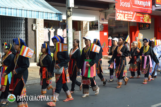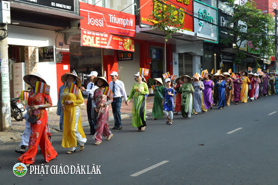 Sau những cơn mưa đầu mùa, sáng nay, ngày mồng tám tháng tư tiết trời tây nguyên ngập tràn nắng ấm. Trên những nẻo đường thành phố Buôn Ma Thuột, kiệu hoa rước Phật được Chư Tăng, Ni và Phật tử của các Tịnh Xá Ngọc Quang, Tịnh xá Lộc Uyển, Chùa Hoa Lâm, A Dục, Phổ Đà, Phổ Minh, Thọ Thành rước về chùa Sắc Tứ Khải Đoan tham dự khai mạc tuần Đại lễ Phật đản. Từng đoàn Phật tử trang nghiêm diễu hành, tay cầm cờ hoa, phan phướn, băng rôn Kính mừng Đại Lễ Phật đản, tràn ngập sắc màu, rộn ràng không khí vui tươi ngày đản sinh. Nhiều người đi đường cảm thấy hiếu kỳ do lần đầu trông thấy những đoàn rước kiệu như thế, bởi đây là nét mới trong sự kiện mừng Phật đản sinh năm nay.