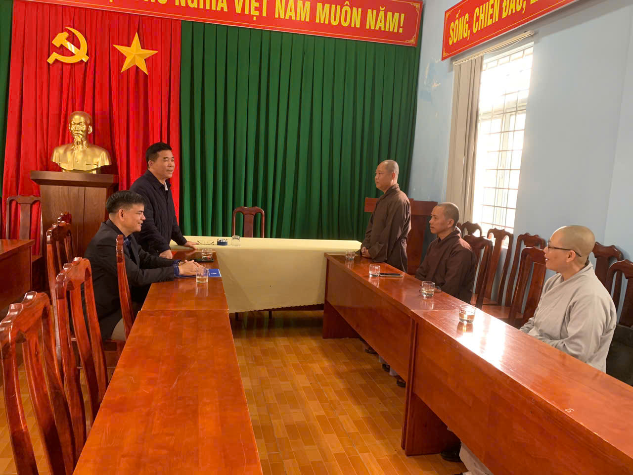 Trong không khí chào đón Tết cổ truyền, sáng ngày 09/02/2026 (nhằm ngày 22/12/ Ất Tỵ ), chư Tăng, Ni trú xứ tại các tự viện NPĐ.Từ Ân, NPĐ.Quán Âm, NPĐ.Từ Vân trên địa bàn xã Ea Ktur đến thăm và chúc tết chính quyền địa phương các cấp. Đoàn thăm và chúc tết có ĐĐ.Thích Lệ Thuận – trụ trì NPĐ.Từ Ân và chư Tăng trú xứ; ĐĐ.Thích Thái Vỹ - trụ trì NPĐ.Quán Âm và Ni sư Thích Nữ Huệ Trung – trụ trì NPĐ.Từ Vân.