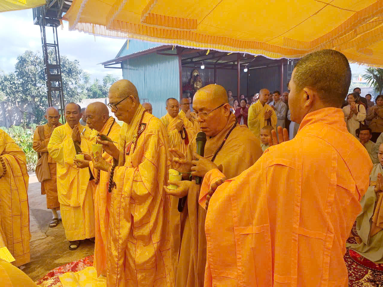 Trong không khí trang nghiêm, thanh tịnh, đại chúng đồng tâm cầu nguyện cho lễ đúc Đại Hồng Chung được diễn ra viên mãn, thành tựu đầy đủ công đức.