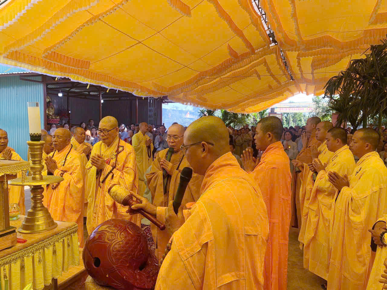 Sáng ngày 24/01/2025 (nhằm ngày 06/12 năm Ất Tỵ), tại Niệm Phật Đường Hải Nguyện, thôn Ea Krom, xã Krông Búk, tỉnh Đắk Lắk đã trang nghiêm diễn ra lễ đúc Đại Hồng Chung. Buổi lễ được sự quang lâm chứng minh của Hòa thượng Thích Châu Quang – UV HĐTS, Chứng minh BTS GHPGVN tỉnh Đắk Lắk; Hòa thượng Thích Huệ Đăng – trụ trì chùa Linh Hòa, tỉnh Lâm Đồng; Thượng toạ Thích Đạt Đức – trụ trì chùa Hải Quang, TP. Hồ Chí Minh cùng sự hiện diện của Chư tôn Thượng tọa, Đại đức Tăng, Ni và hơn 500 Phật tử, thiện nam tín nữ gần xa về tham dự.