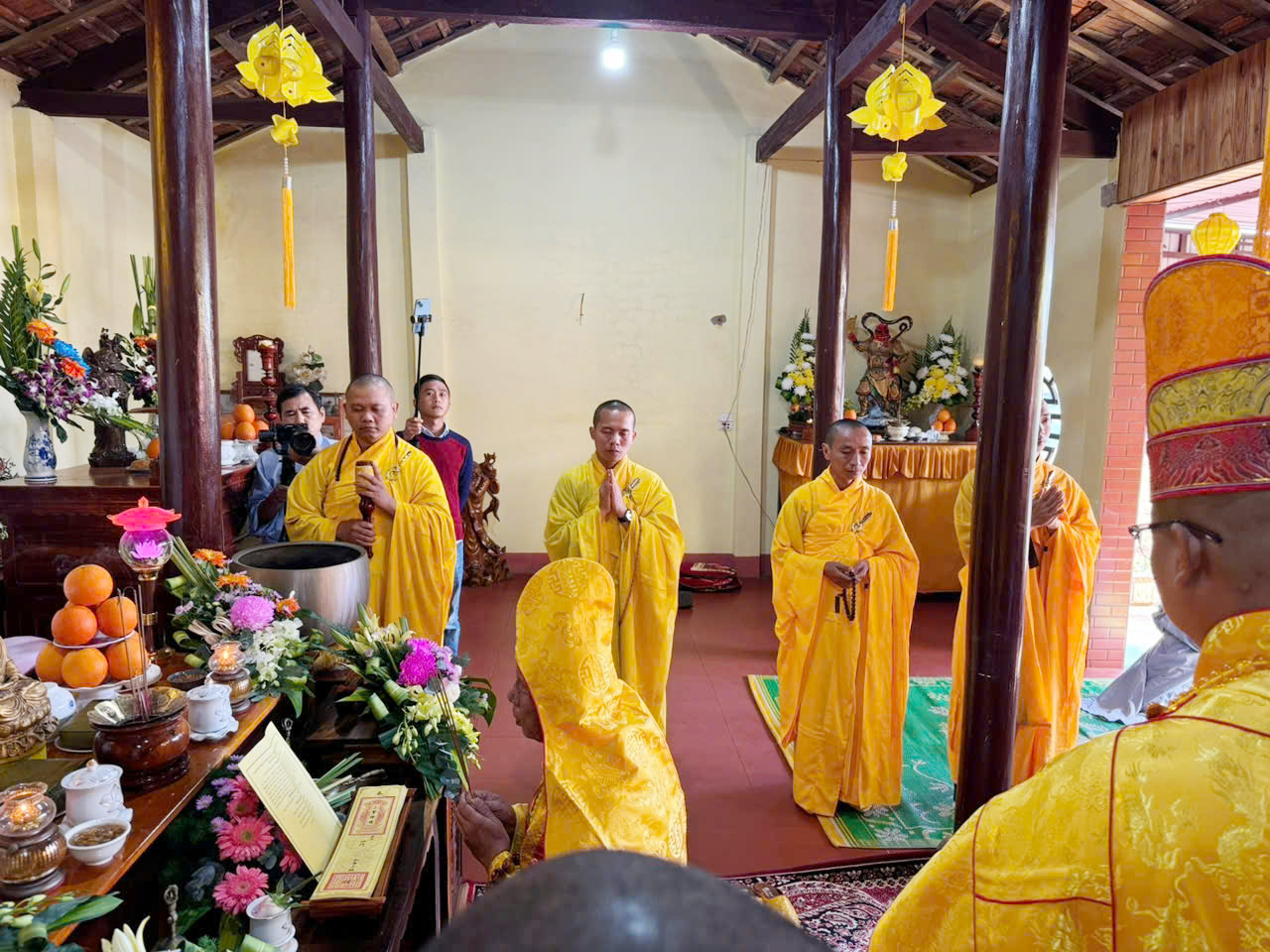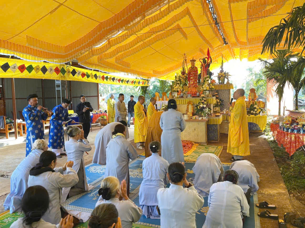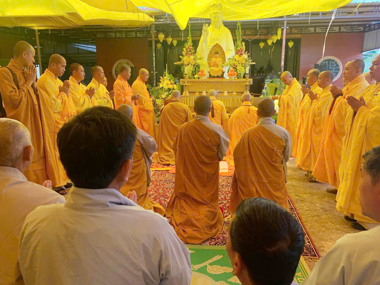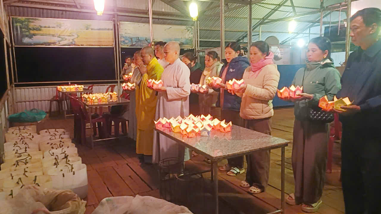 Trong khuôn khổ khóa lễ, đạo tràng đã cung thỉnh Ban Kinh sư đăng đàn chẩn tế, dâng hương bạch Phật, tụng kinh cầu siêu, giải oan bạt độ, dâng lễ hoa đăng và phóng sanh các loài thủy tộc. Sám chủ trai đàn là Thượng tọa Thích Quảng Đàm – trụ trì chùa An Lạc, phường Buôn Hồ, tỉnh Đắk Lắk; Thượng tọa Thích Nguyên Hạnh – trụ trì chùa Linh Thứu, phường Cư Bao, tỉnh Đắk Lắk và chư vị Tôn đức ban Kinh sư đồng nhất tâm cầu nguyện quốc thái dân an, mưa thuận gió hòa, chúng sinh an lạc.
