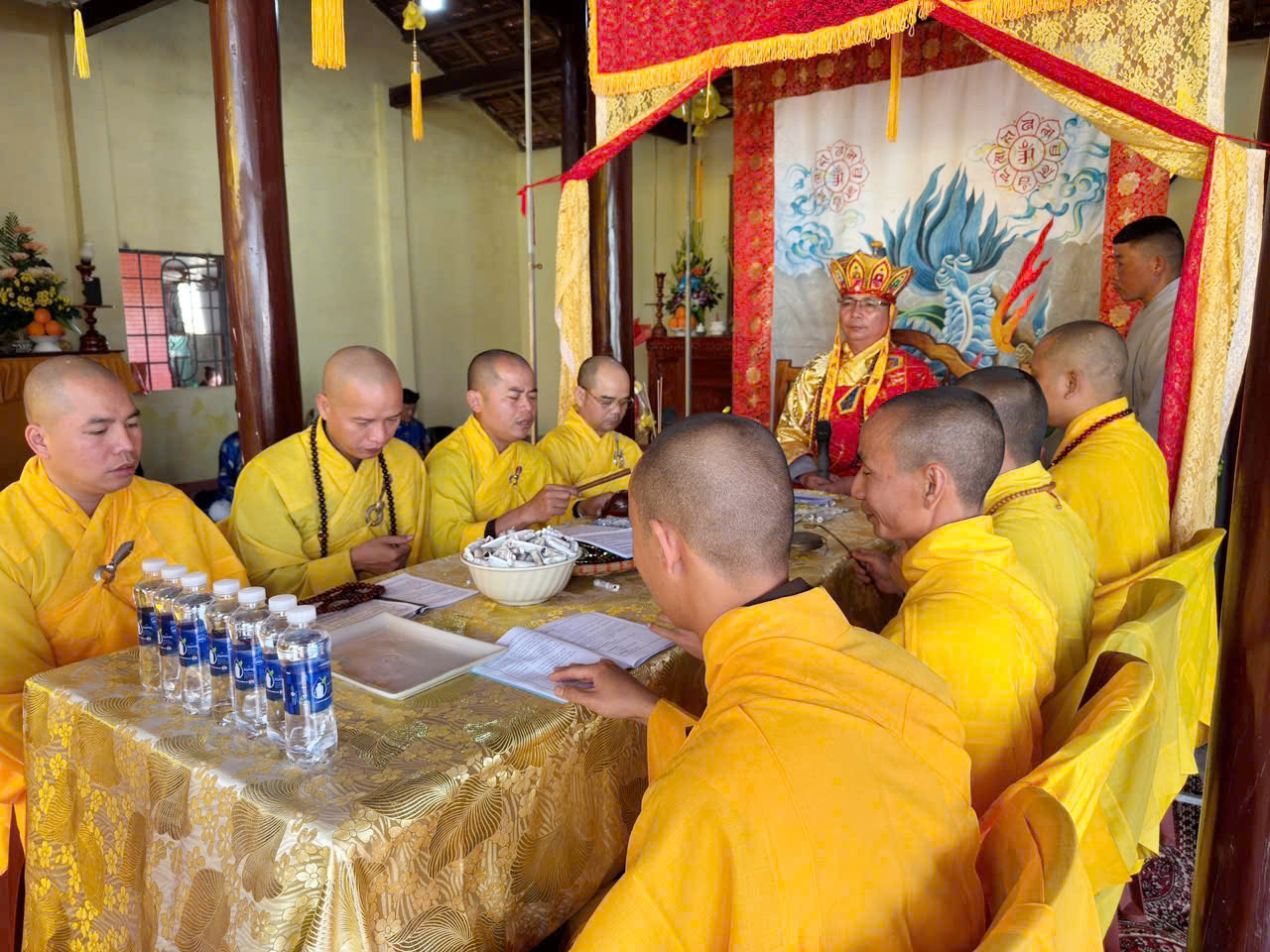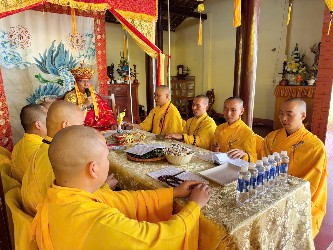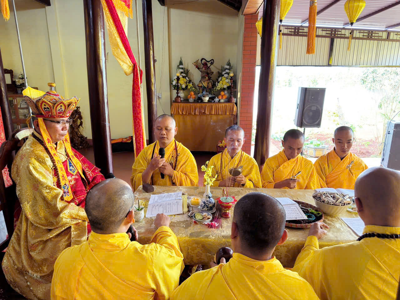 Trong khuôn khổ khóa lễ, đạo tràng đã cung thỉnh Ban Kinh sư đăng đàn chẩn tế, dâng hương bạch Phật, tụng kinh cầu siêu, giải oan bạt độ, dâng lễ hoa đăng và phóng sanh các loài thủy tộc. Sám chủ trai đàn là Thượng tọa Thích Quảng Đàm – trụ trì chùa An Lạc, phường Buôn Hồ, tỉnh Đắk Lắk; Thượng tọa Thích Nguyên Hạnh – trụ trì chùa Linh Thứu, phường Cư Bao, tỉnh Đắk Lắk và chư vị Tôn đức ban Kinh sư đồng nhất tâm cầu nguyện quốc thái dân an, mưa thuận gió hòa, chúng sinh an lạc.