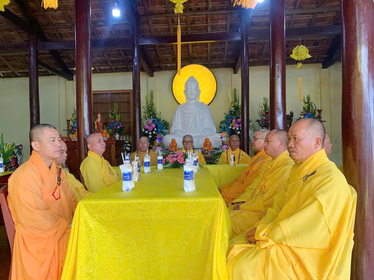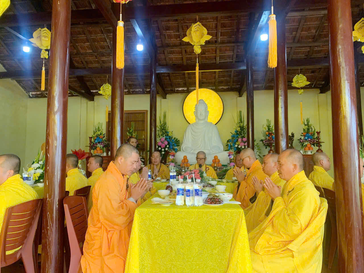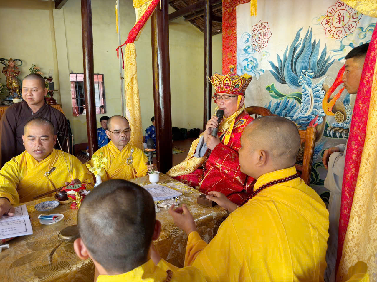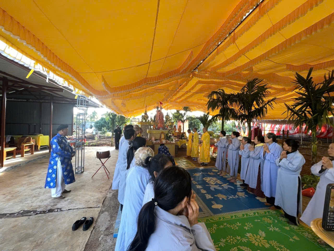 Trong khuôn khổ khóa lễ, đạo tràng đã cung thỉnh Ban Kinh sư đăng đàn chẩn tế, dâng hương bạch Phật, tụng kinh cầu siêu, giải oan bạt độ, dâng lễ hoa đăng và phóng sanh các loài thủy tộc. Sám chủ trai đàn là Thượng tọa Thích Quảng Đàm – trụ trì chùa An Lạc, phường Buôn Hồ, tỉnh Đắk Lắk; Thượng tọa Thích Nguyên Hạnh – trụ trì chùa Linh Thứu, phường Cư Bao, tỉnh Đắk Lắk và chư vị Tôn đức ban Kinh sư đồng nhất tâm cầu nguyện quốc thái dân an, mưa thuận gió hòa, chúng sinh an lạc.