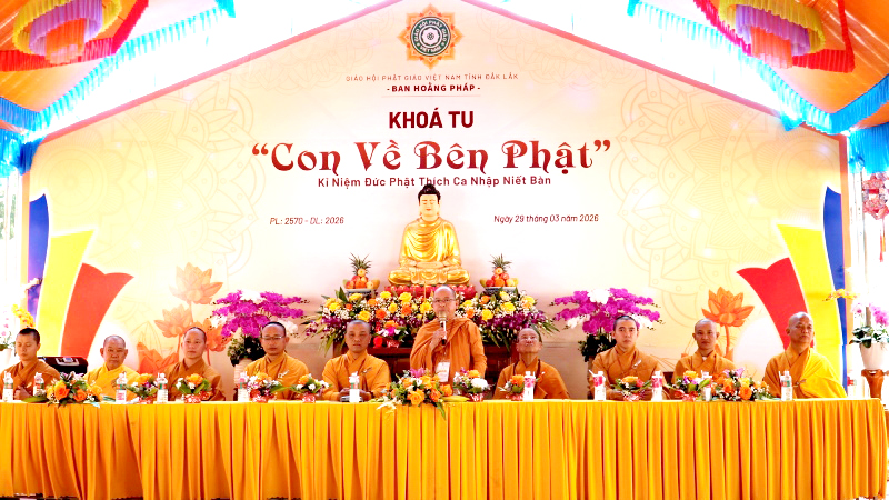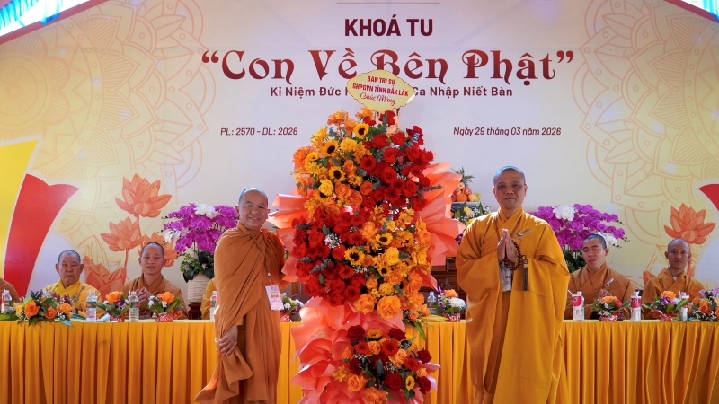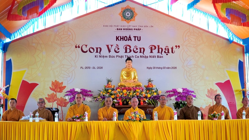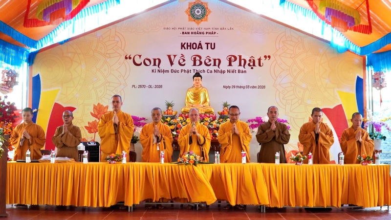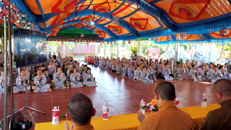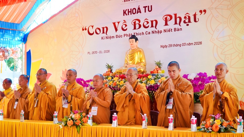 Phát biểu khai mạc, Thương toạ Thích Quảng Huy đã nhắc lại ý nghĩa thiêng liêng của sự kiện Đức Phật nhập diệt. Thượng tọa sách tấn đại chúng hãy xem khóa tu là cơ duyên quý báu để quay về nương tựa “hải đảo tự thân”, thực tập tỉnh thức và chế tác năng lượng bình an trong từng hơi thở.