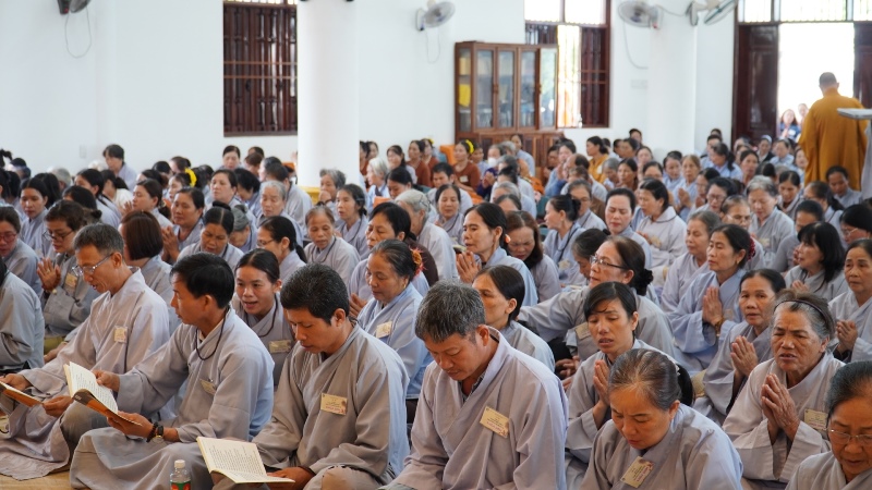 Sau lễ khai mạc, Khoá tu bắt đầu với thời khoá tụng kinh - tưởng niệm ngày Đức Phật nhập Niết Bàn dưới sự hướng dẫn của chư Tôn đức trong Ban Hoằng pháp.