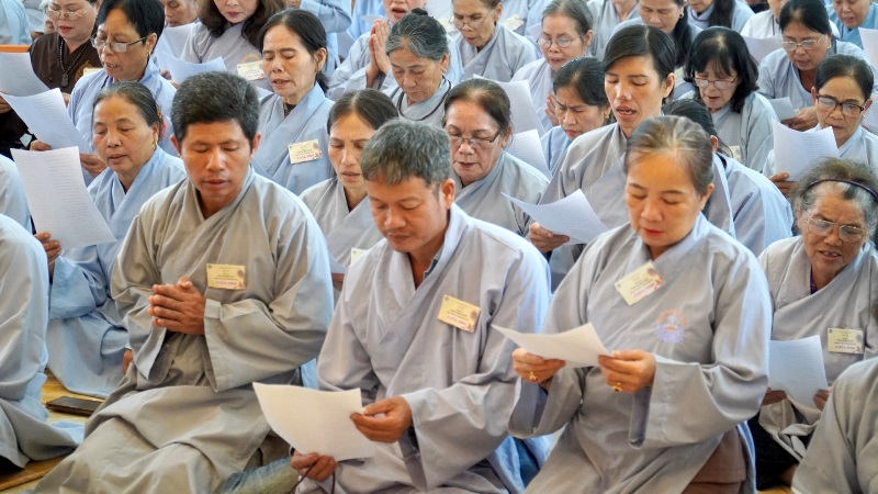 Đại diện cho hơn 600 hành giả, Phật tử Diệu Hòa đã dâng lời tác bạch, bày tỏ niềm tri ân sâu sắc đến chư Tôn đức đã tạo ra chốn về tâm linh, giúp hàng Phật tử gác lại trần duyên để sống trọn vẹn trong chánh niệm.