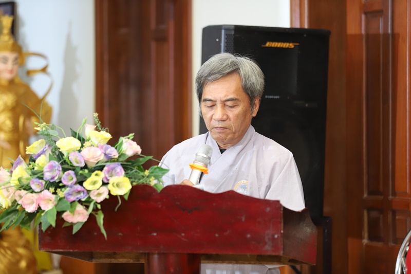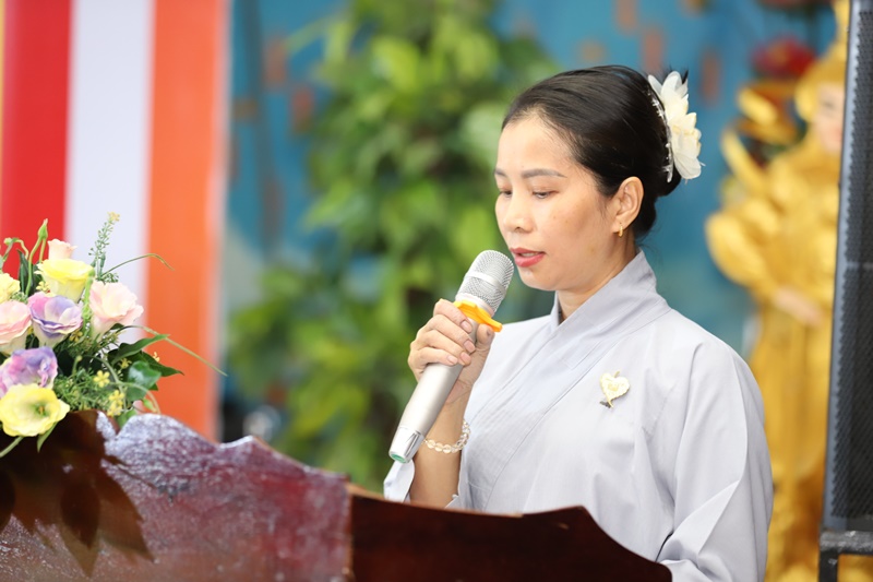 Trong niềm xúc động, đại diện lớp học, Phật tử Nhuận Hưng đã dâng lời cảm tưởng, bày tỏ lòng tri ân sâu sắc đến chư Tôn đức giáo thọ đã tận tâm giảng dạy, truyền trao kiến thức và kinh nghiệm tu tập cho hàng Phật tử tại gia.