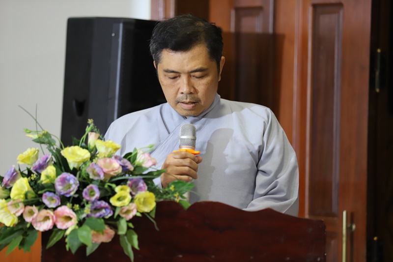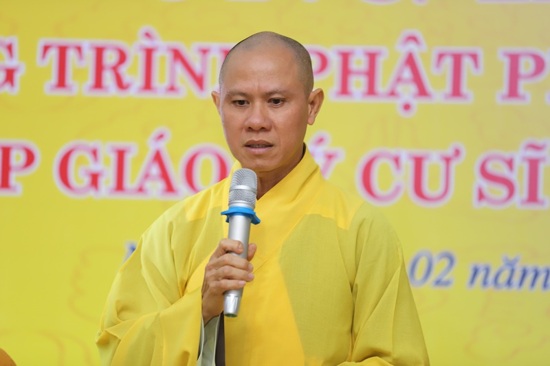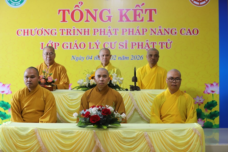 Phát biểu khai mạc, Thượng tọa Thích Quảng Huy nhấn mạnh tầm quan trọng của việc học tập giáo lý Phật pháp một cách hệ thống và chuyên sâu đối với hàng cư sĩ Phật tử. Thượng tọa khẳng định, chỉ khi có chánh kiến và hiểu đúng Phật pháp, người Phật tử tại gia mới có thể vững vàng trong tu tập, làm tròn trách nhiệm hộ trì Tam bảo và góp phần xây dựng Giáo hội. Giáo lý Phật pháp chính là kim chỉ nam giúp người Phật tử chuyển hóa khổ đau, đoạn trừ điều xấu, phát huy điều thiện, nuôi dưỡng đức tin chân chánh, đạo đức và ý thức nhân quả, làm nền tảng cho đời sống an lạc của cá nhân, gia đình và xã hội. Buổi tổng kết không chỉ nhằm đánh giá kết quả đạt được mà còn là dịp sách tấn, khơi dậy chí nguyện tu học lâu dài nơi mỗi học viên.