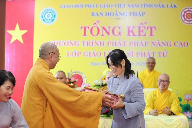 Dịp này, Ban Tổ chức đã trao giấy chứng nhận hoàn thành khóa học và tuyên dương, khen thưởng các học viên đạt thành tích xuất sắc, ghi nhận sự trưởng thành về nhận thức giáo lý và đời sống tâm linh của các học viên.