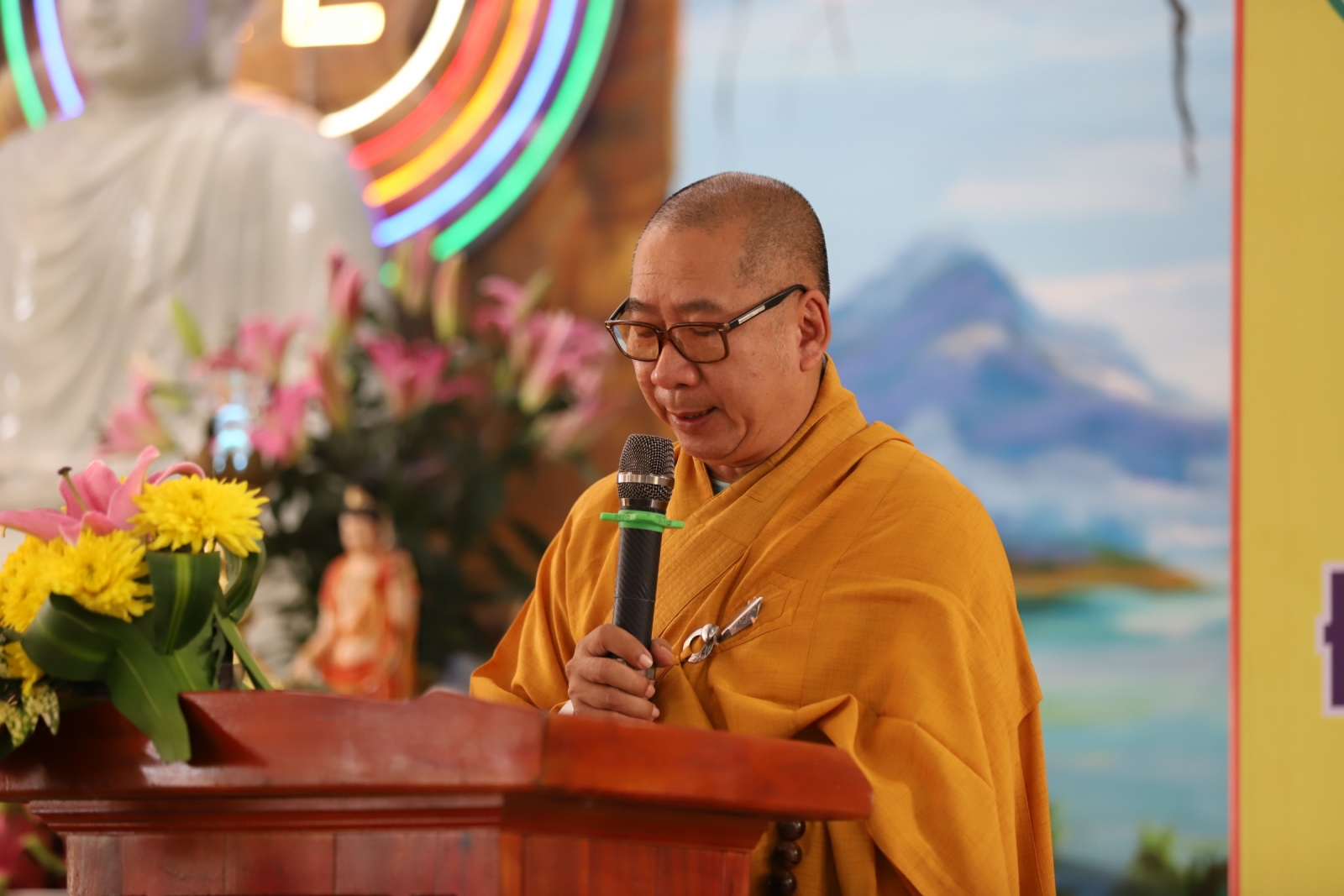 Ban đạo từ tại buổi lễ, Thượng tọa Thích Quảng Huy nhấn mạnh ngày kỷ niệm Đức Phật Thích Ca Mâu Ni thành đạo là lời nhắc nhở người con Phật quay về sống đời tỉnh thức; khuyến tấn Phật tử thực tập chánh niệm để đánh thức Phật tánh sẵn có nơi mỗi người, bởi sự tỉnh thức chính là nền tảng của an lạc và chuyển hóa khổ đau.