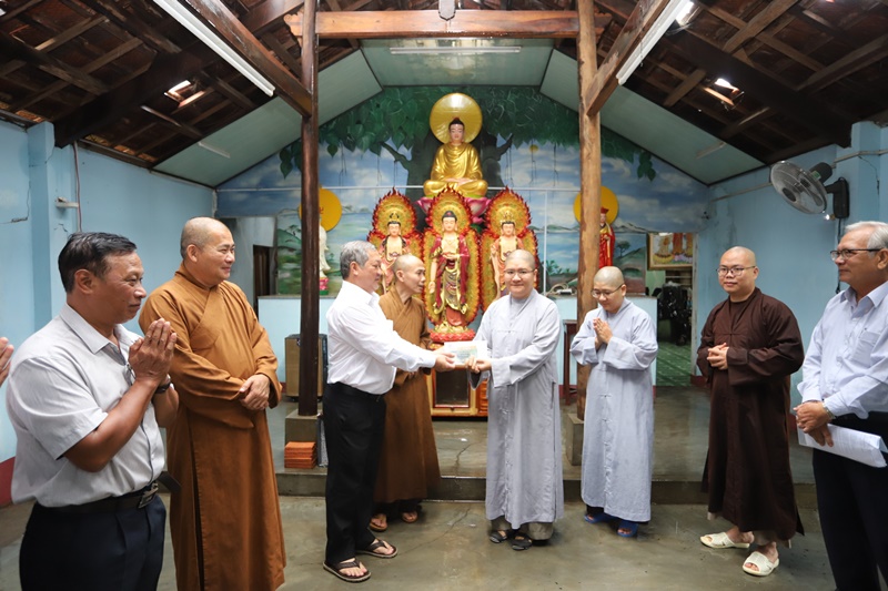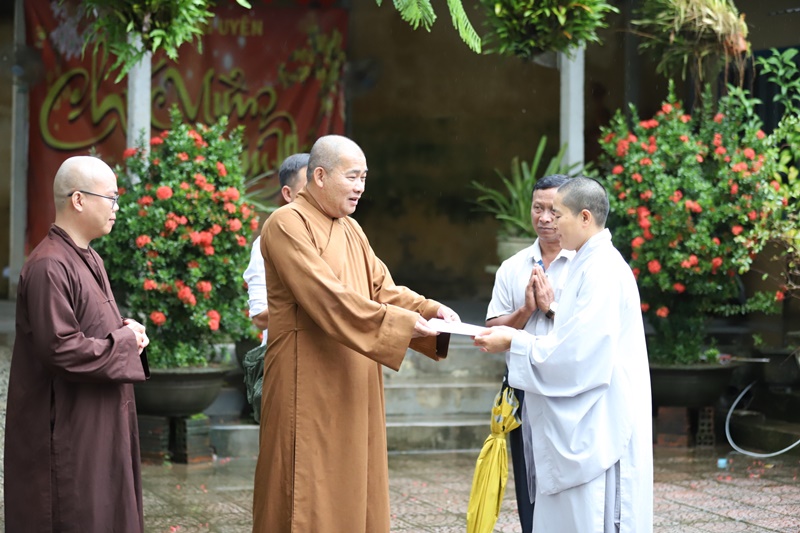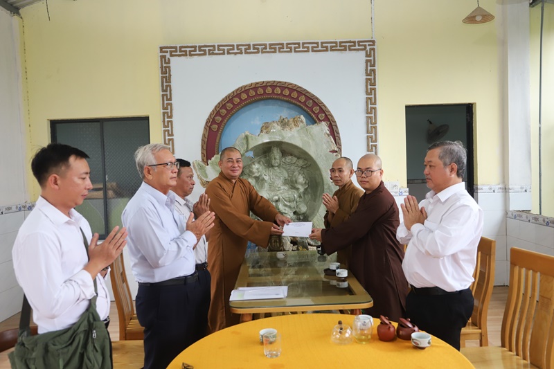 Tại các điểm thăm, Đại đức Thích Chúc Phát thay mặt Ban Trị sự GHPGVN tỉnh ân cần thăm hỏi sức khỏe chư tôn đức Tăng Ni và ghi nhận những khó khăn mà các tự viện đang đối mặt. Đại đức cũng động viên chư tôn đức Tăng Ni sớm khắc phục hậu quả sau bão, ổn định sinh hoạt tu học, tiếp tục con đường hoằng pháp lợi sinh và là điểm tựa tinh thần cho Phật tử gần xa. Đồng thời, Ban Trị sự cũng trao phần hỗ trợ cho một chùa là 5 triệu đồng.