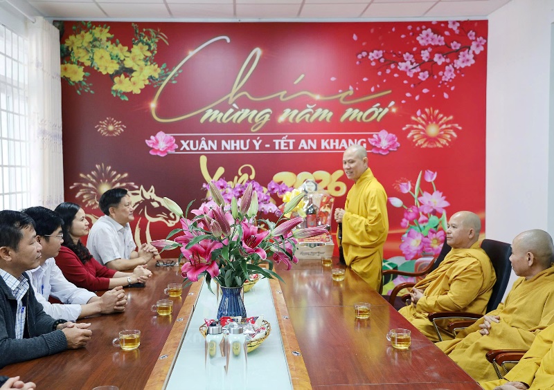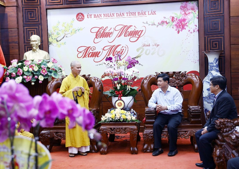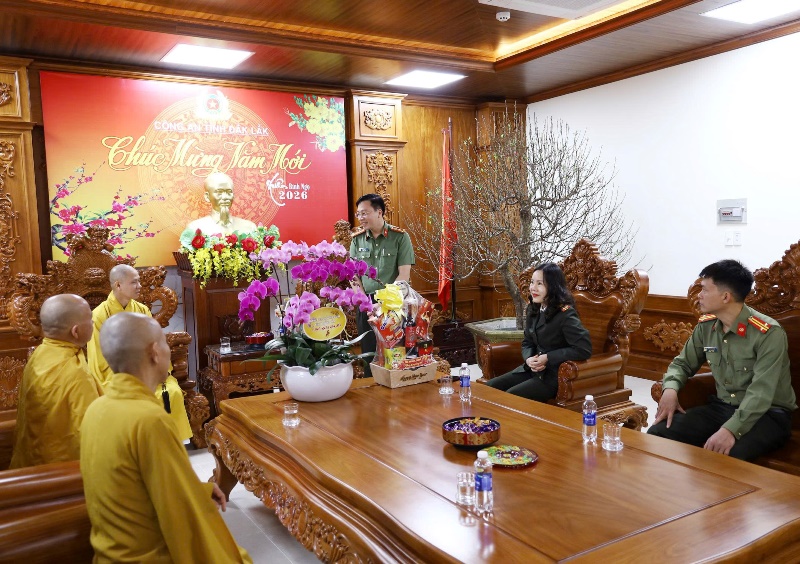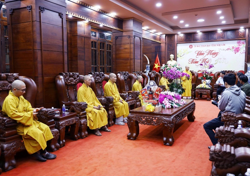 Trước thềm năm mới Xuân Bính Ngọ 2026, sáng ngày 30/01/2026 (nhằm ngày 12/Chạp/Ất Tỵ), Thường trực BTS PG tỉnh Đắk Lắk đến thăm và chúc tết các cơ quan chức năng tỉnh Đắk Lắk.Phái đoàn do Thượng tọa Thích Nguyên Minh - Ủy viên Hội đồng Trị sự, Trưởng ban Trị sự GHPGVN tỉnh Đắk Lắk làm trưởng đoàn. Tháp tùng đoàn có Thượng tọa Thích Giác Phổ - Phó Trưởng ban Thường trực Ban Trị sự GHPGVN tỉnh Đắk Lắk; Thượng tọa Thích Trí Nghĩa - Phó ban kiêm Trưởng ban Từ thiện xã hội; Đại đức Thích Chúc Phát - Phó Ban kiêm Chánh Thư ký GHPGVN tỉnh Đắk Lắk cùng Chư tôn đức trong Thường trực Ban Trị sự GHPGVN tỉnh đã đến thăm, chúc tết cổ truyền các cơ quan: Tỉnh uỷ Đắk Lắk; Ban Tuyên giáo và Dân vận Tỉnh uỷ Đắk Lắk; UBND tỉnh Đắk Lắk; UBMTTQVN tỉnh Đắk Lắk; Ban Giám đốc Công an tỉnh Đắk Lắk; Phòng An ninh nội địa Công an tỉnh Đắk Lắk và Sở Dân tộc Tôn giáo tỉnh Đắk Lắk.
