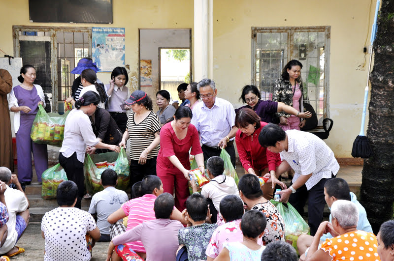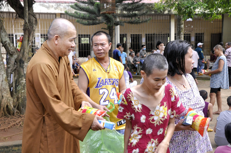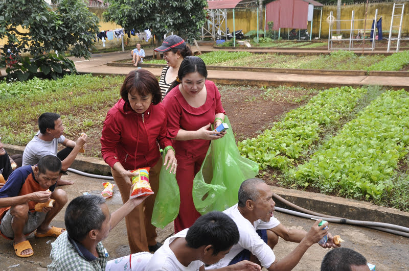 Tại điểm phát quà, đoàn được các nhân viên Trung tâm đón tiếp rất vui vẻ và tạo điều kiện giúp đỡ đưa đến khu ở của bệnh nhân tâm thần và các cụ già, các em khuyết tật để phát quà cùng với những lời chia sẻ động viên rất tình cảm.