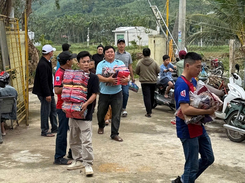 Theo chương trình, đoàn thiện nguyện đã trao tặng các phần quà gồm các nhu yếu phẩm và bì thư đến các hộ gia đình có hoàn cảnh khó khăn do ảnh hưởng nặng nề từ đợt bão lũ lịch sử vừa qua. Cụ thể, tại chùa Phước Điền (huyện Tây Hoà cũ) thăm hỏi và trao tặng 110 phần quà. Sau khi lễ Phật, cúng dường tịnh tài, tịnh vật đến chùa, đoàn được Sư cô trụ trì hướng dẫn di chuyển vào núi – nơi bị ảnh hưởng lớn bởi lũ lụt vừa qua. Tại đây, Đoàn trao tặng 100 phần quà.